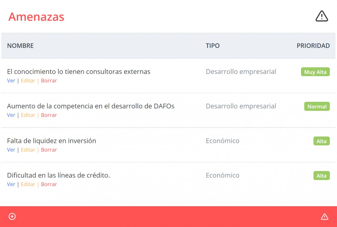 Puedes darte de alta y comenzar a desarrollar tus Amenazas para el proyecto que tienes pensado.
